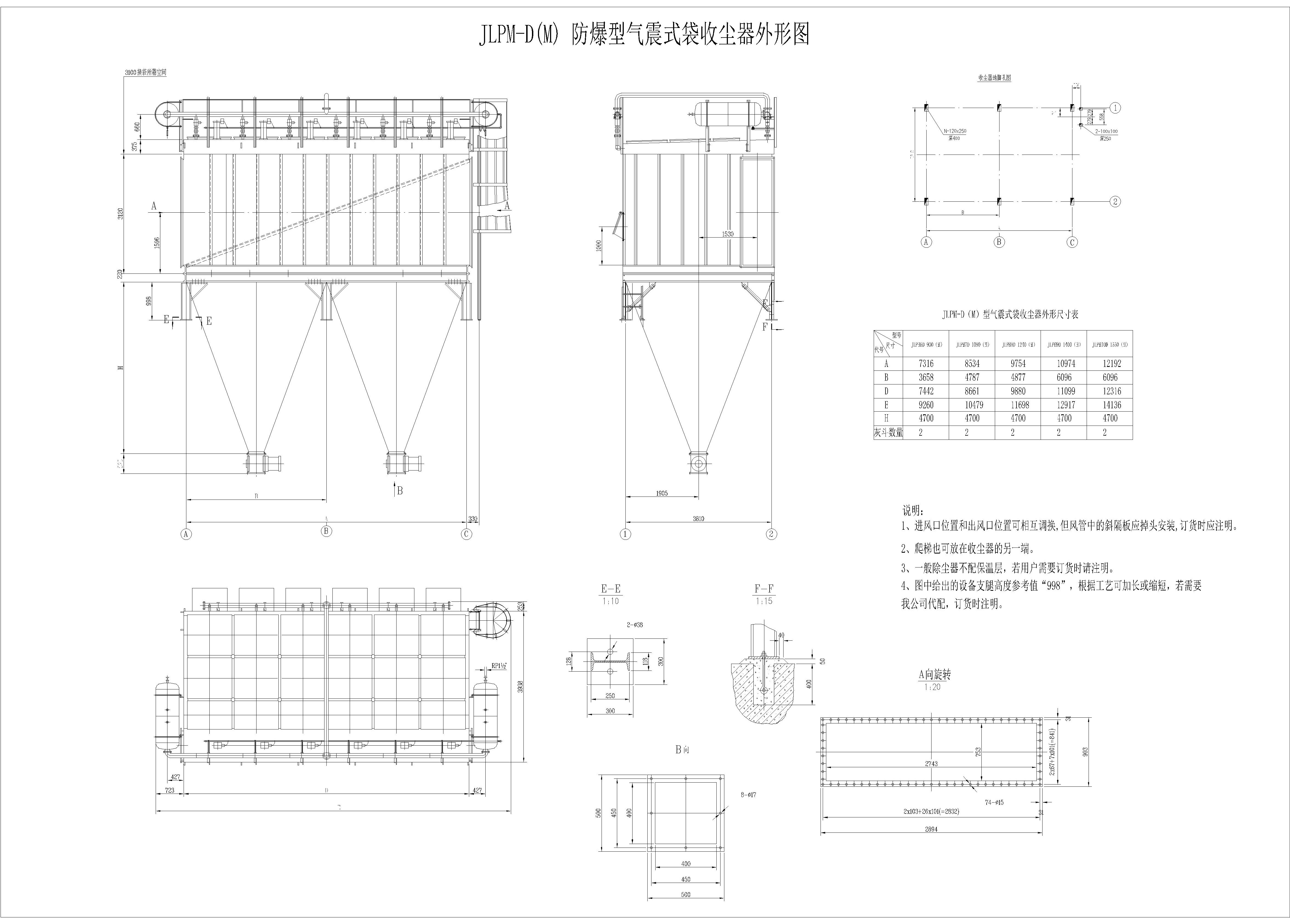 - 收塵器本體以外的配套風管、風機、壓縮空氣源(如空壓機)及其管路,收塵器的基礎等本公司不負責供應,一切由用戶自理。